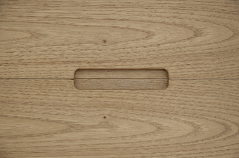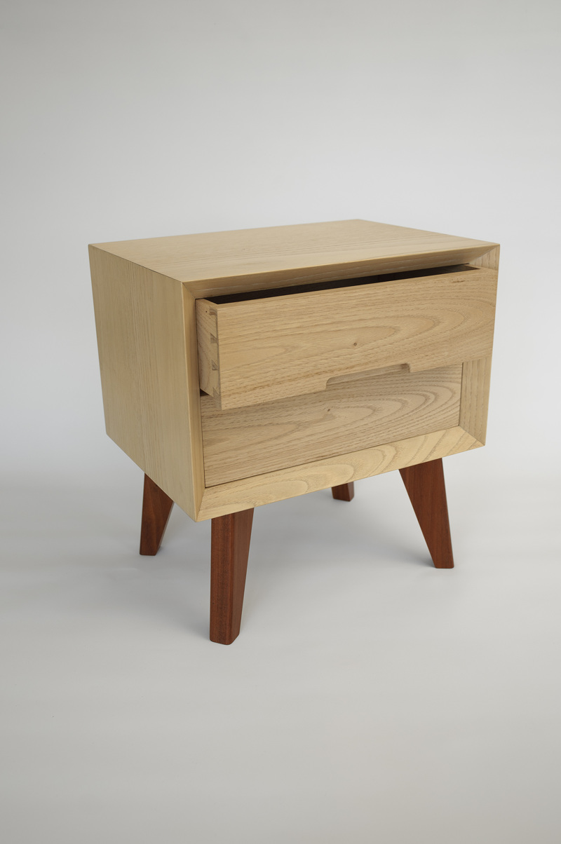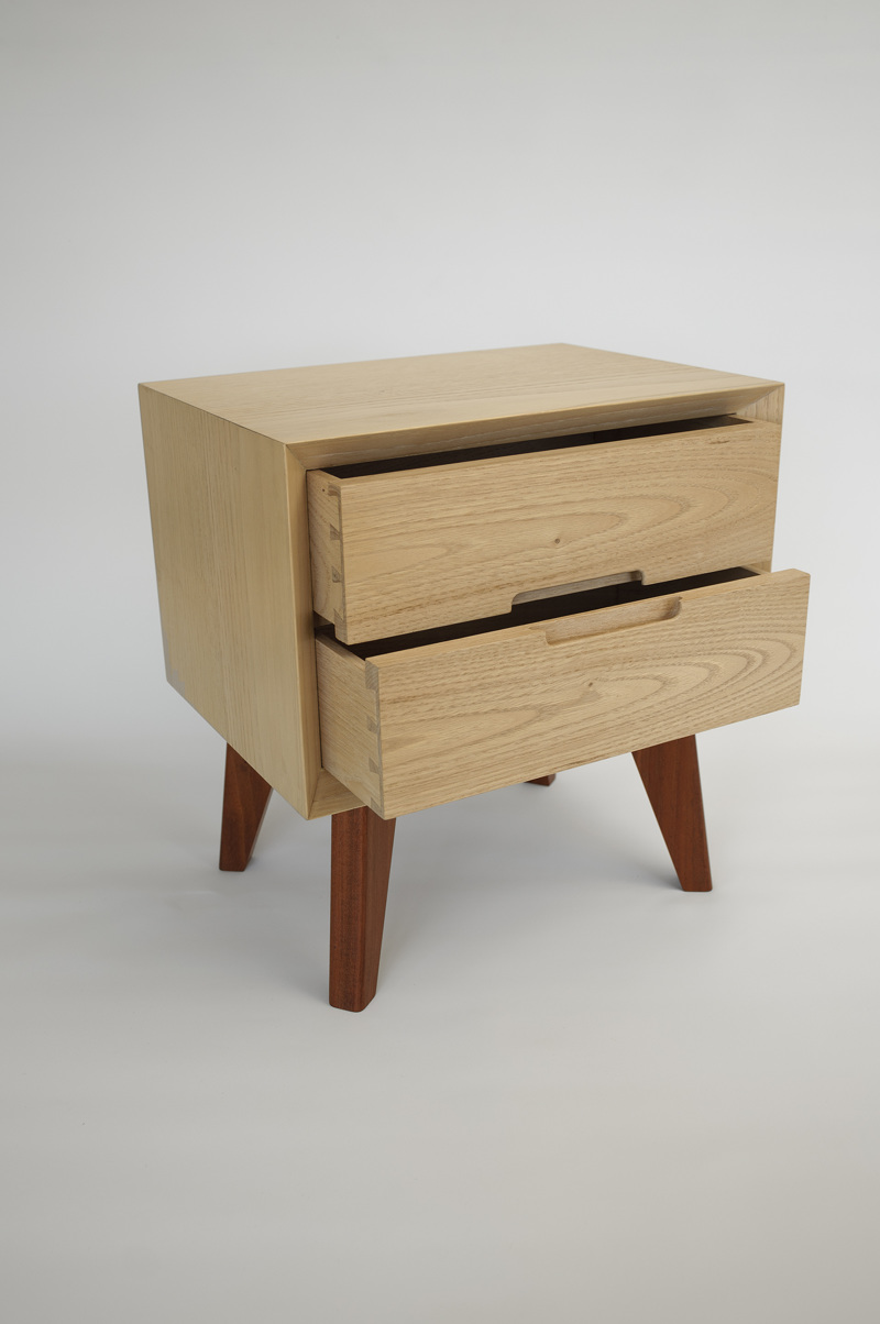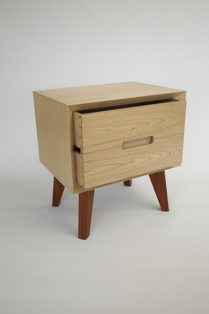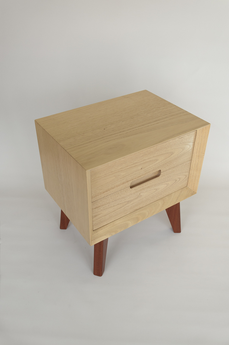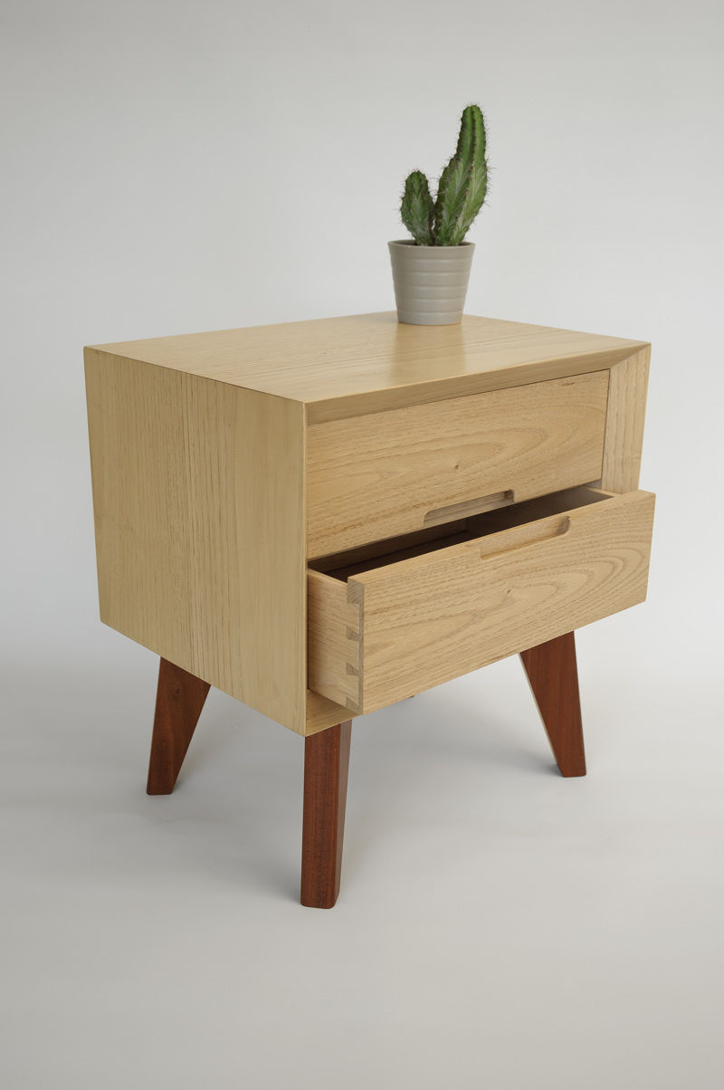 This small container has been built using full-blind dovetail joints which means that all joints are hidden, safe from the ones on the bottom. The front of the panels have been champhered and mitered on the corners. Legs are made of spell wood creating a contrast with the body.
