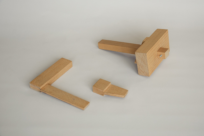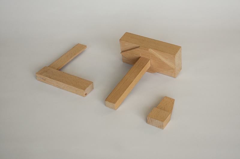 A square, a dovetail gauge and a marking gauge made of beech wood.